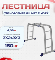 Универсальная шарнирная конструкция позволяет преобразовывать лестницу в двухстороннюю стремянку или обычную приставную лестницу. Широкая траверса обеспечивает устойчивость при проведении работ. Изготовлена из легкого алюминиевого профиля. Может перемещаться и складываться/раскладываться одним человеком. Компактна при хранении и транспортировке.