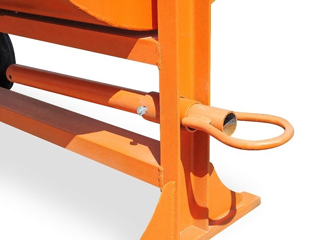 Принцип работы заключается в перемешивании компонентов с помощью 4-х резиновых лопастей, находящихся на горизонтальном валу, расположенном внутри барабана. При приготовлении строительных растворов, вначале в растворомешалку заливается вода, затем заполнитель, вяжущие смеси и пластификаторы. Время замеса, в зависимости от используемых материалов 105-120 с. После разгрузки готового раствора, сразу готов к новому циклу работы.