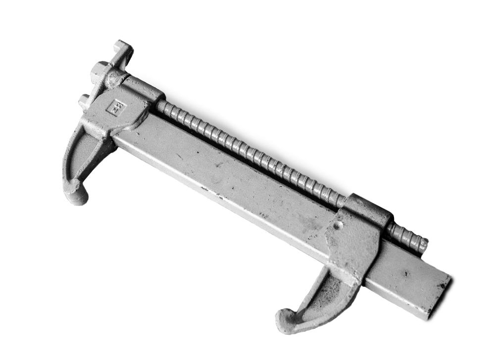 Замок опалубки удлиненный выравнивает щитовые панели относительно друг друга и крепко фиксирует форму конструкции. Изготовлен из чугуна.
