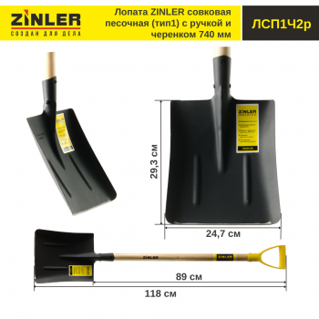 Лопата совковая песочная (тип 1) с деревянным черенком 740 мм и ручкой