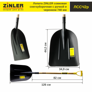 Лопата совковая снегоуборочная с деревянным черенком 740 мм и ручкой