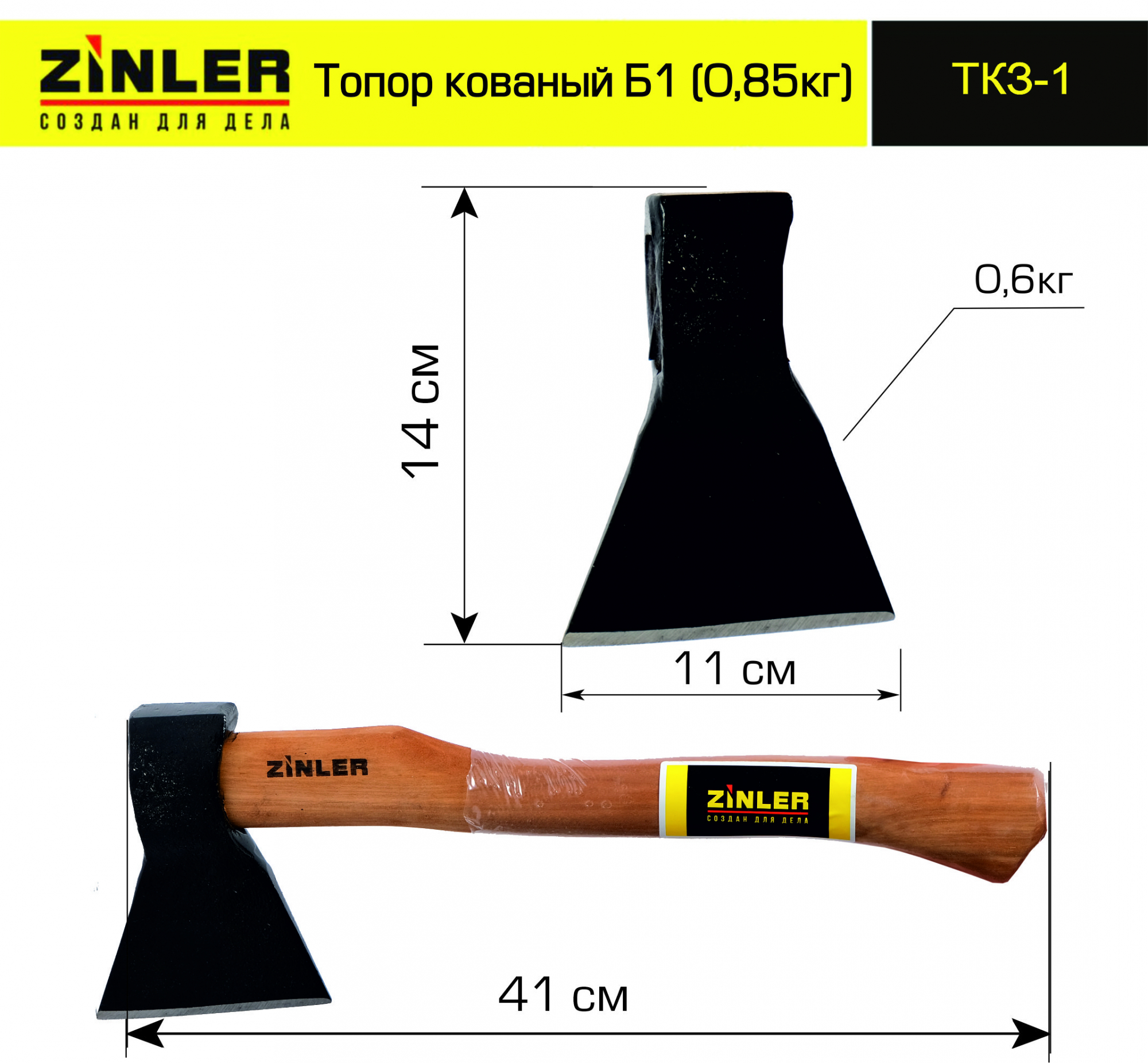 Топор ZINLER кованый 0,6 кг в сборе, Б1 (общий вес 0,85 кг)